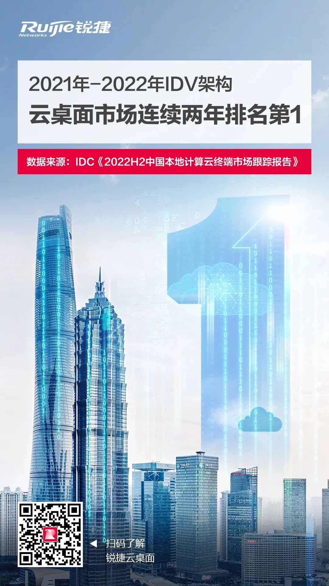 2021年-2022年锐捷网络在IDV架构云桌面市场连续两年排名第1